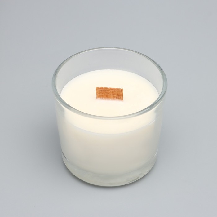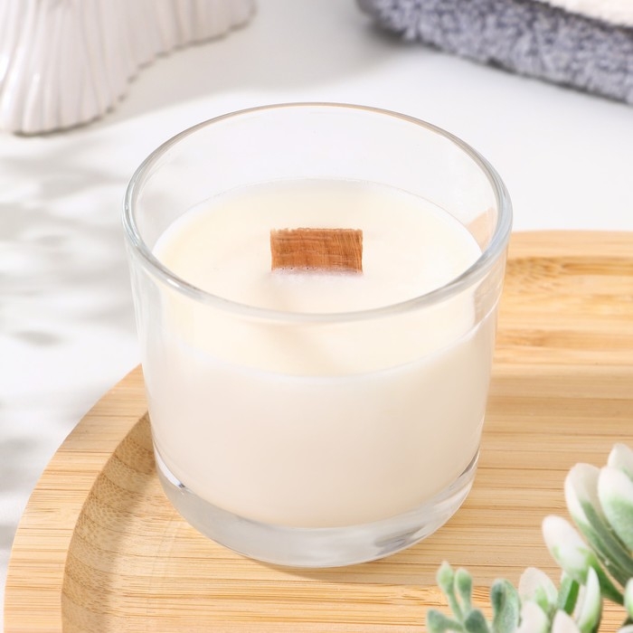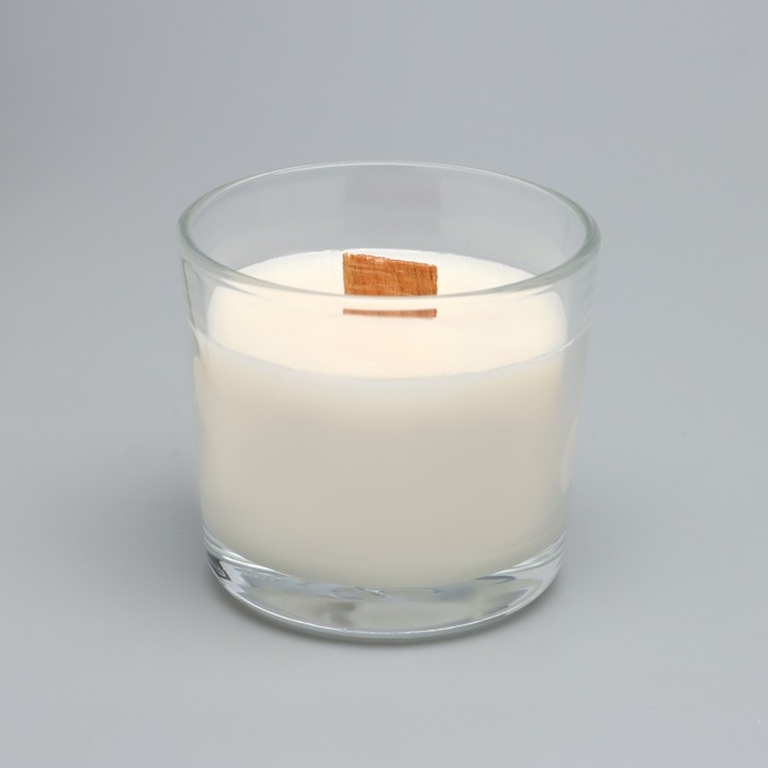 Свеча из соевого воска в стакане с деревянным фитилем "Ванильный капучино", 65 гр