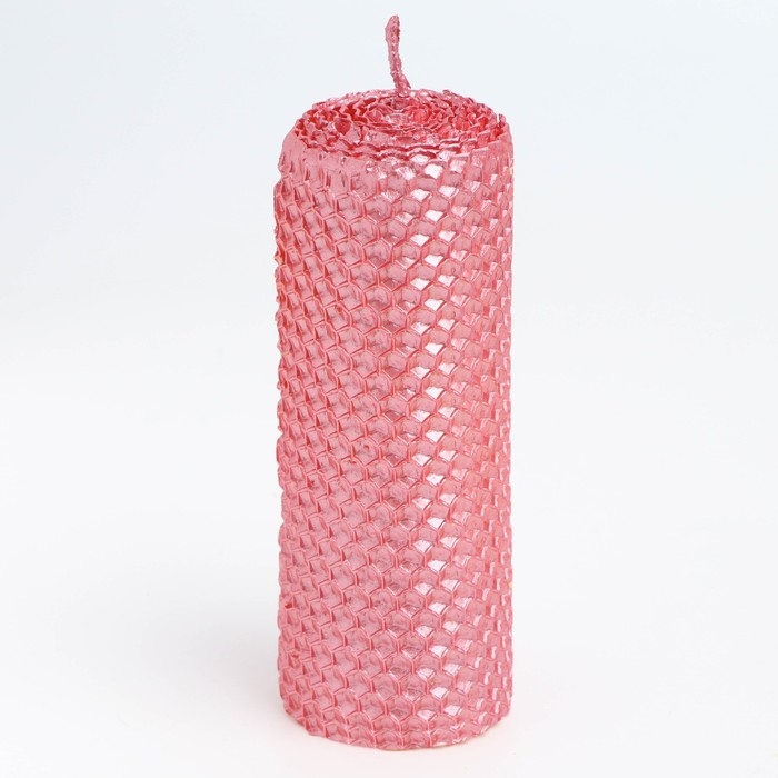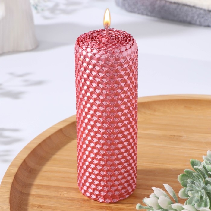 Свеча из вощины, 4,5х4,5х12,5 см, фуксия металлик