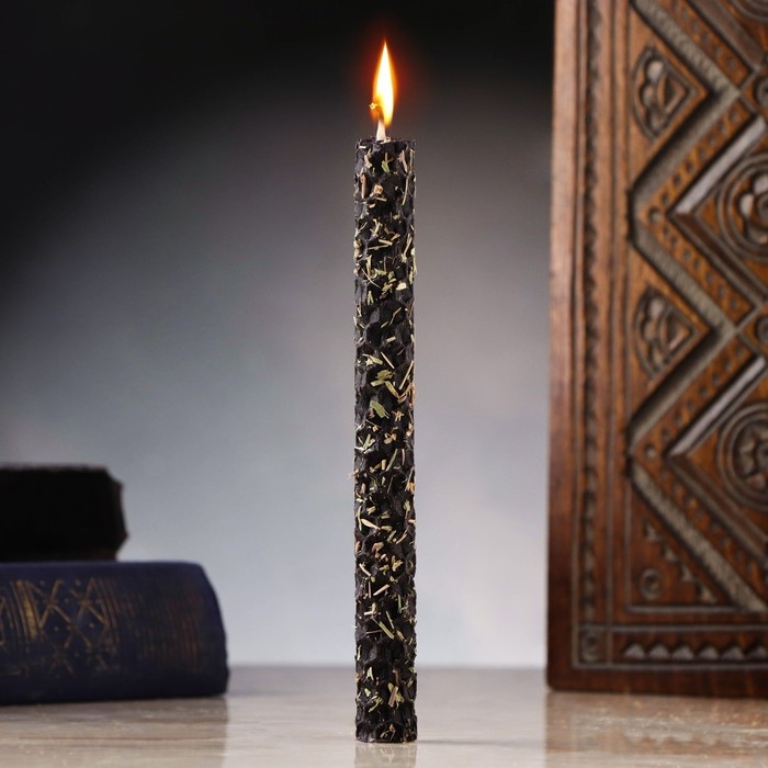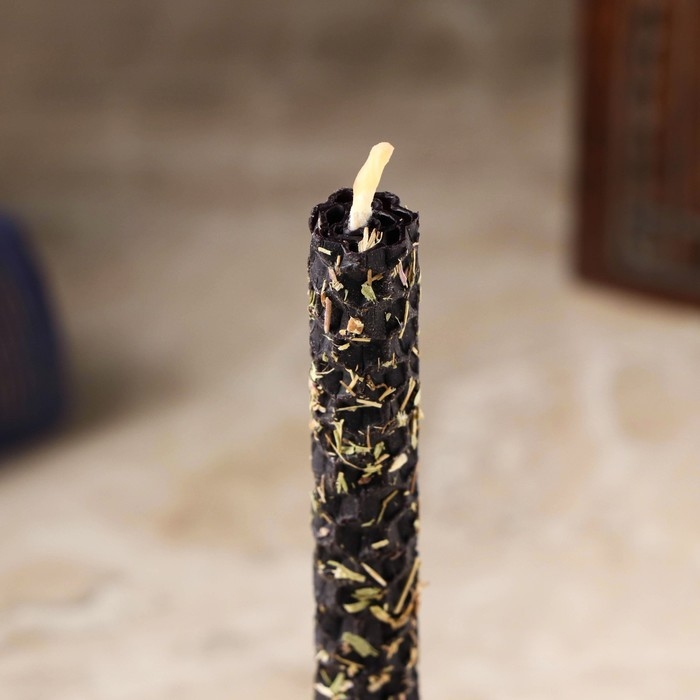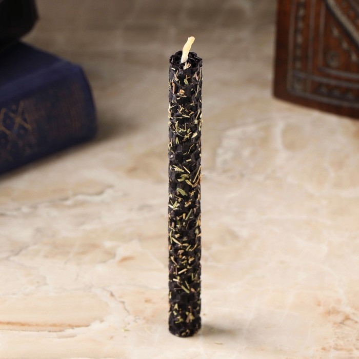 Свеча из вощины с чабрецом "Восстановление энергетики человека" , 13х1,7 см, 1 ч, черный