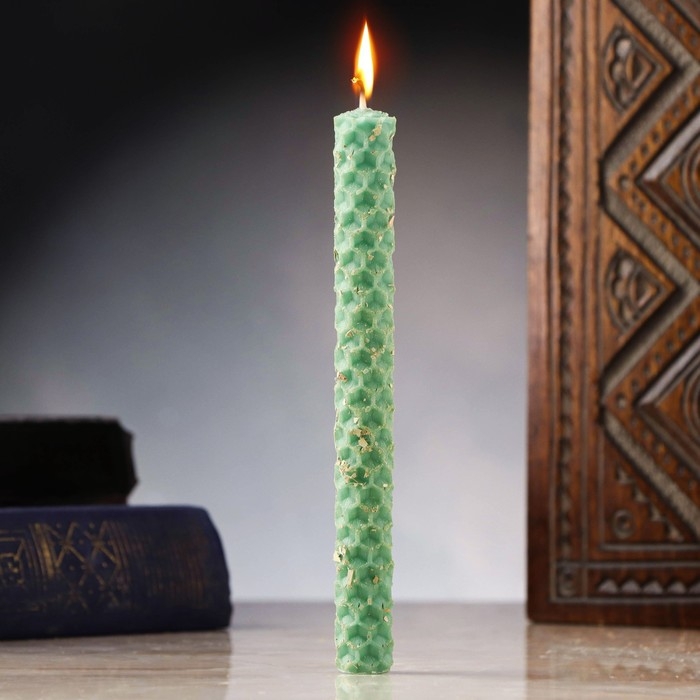 Свеча из вощины с эвкалиптом "От плохих людей и злых духов" , 13х1,7 см, 1 ч, зеленый