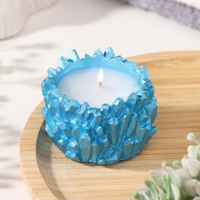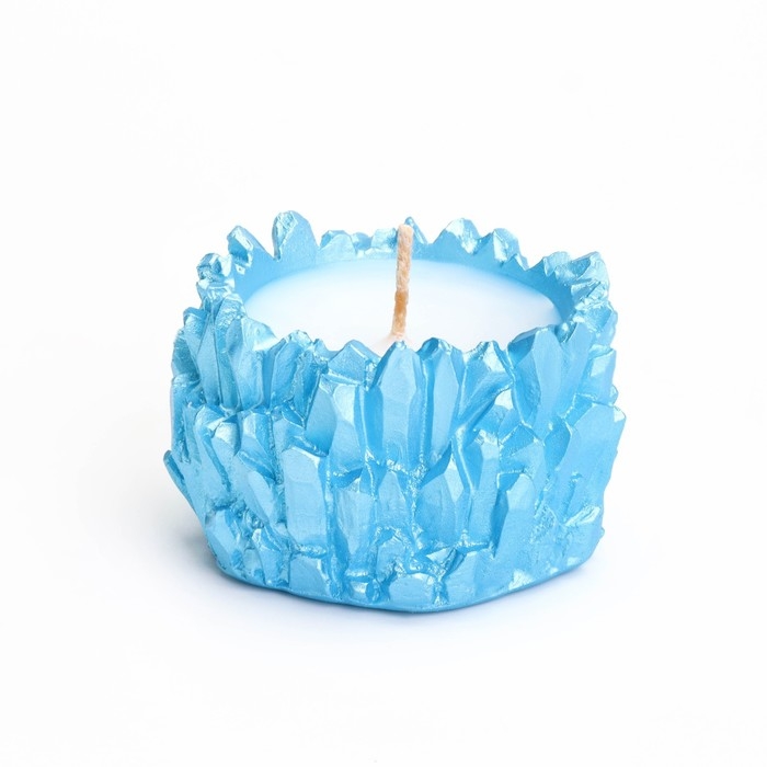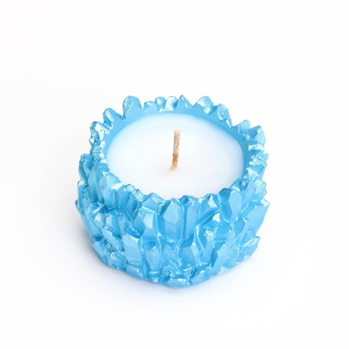 Свеча "Кристаллы" в подсвечнике из гипса,6х4см, голубой