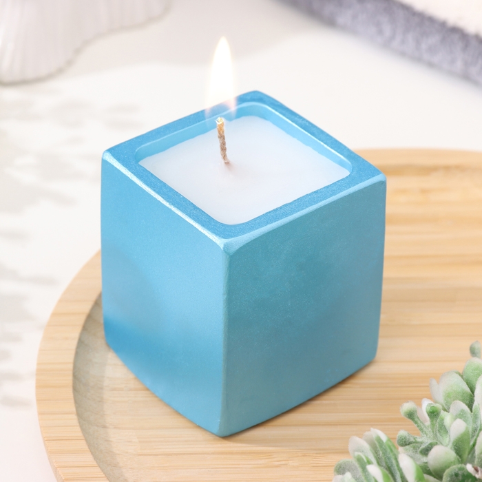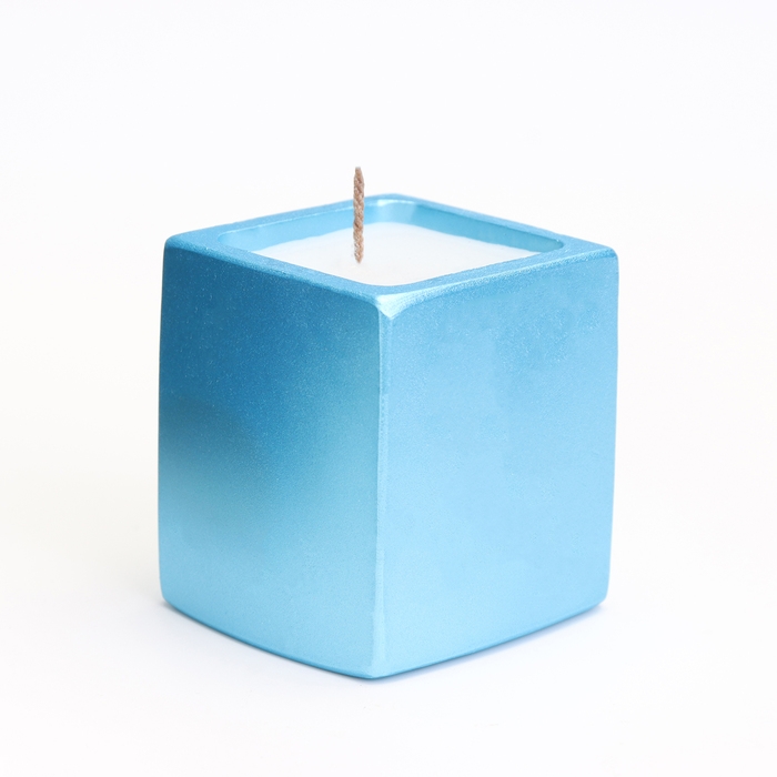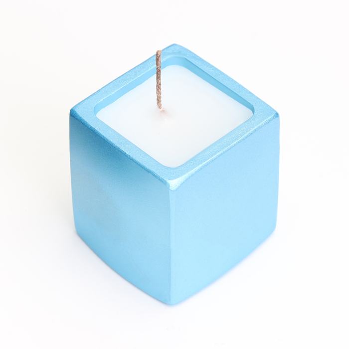 Свеча "Квадрат" в подсвечнике из гипса,5х6см,голубой