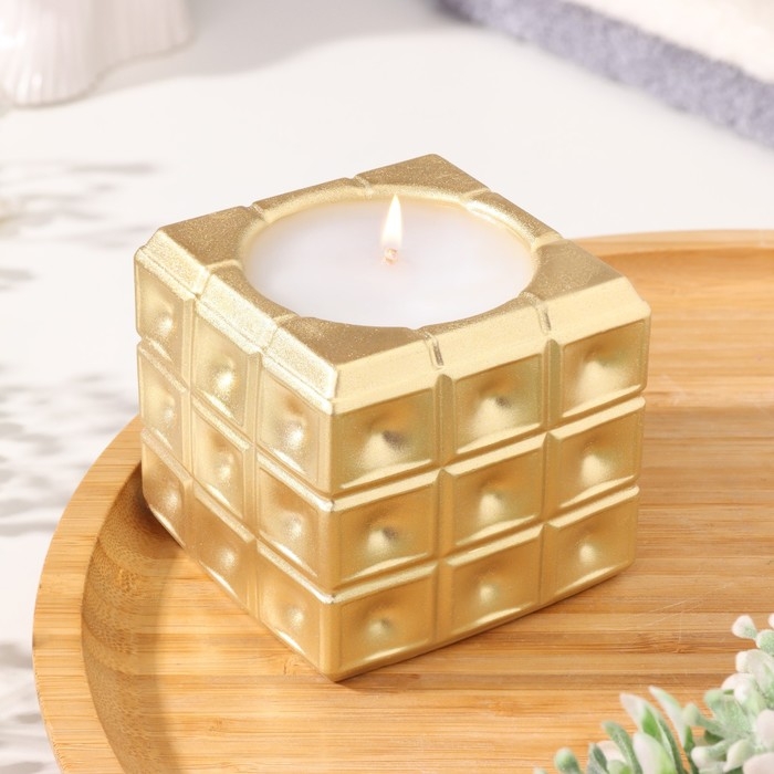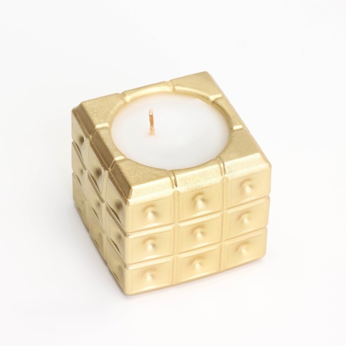 Свеча "Квадрат в точку" в подсвечнике из гипса, 7,5х6,5см, золото