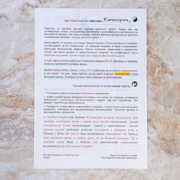 Свеча магическая медовая для усиления жизненной и сексуальной энергетики «Камасутра» 12 шт
