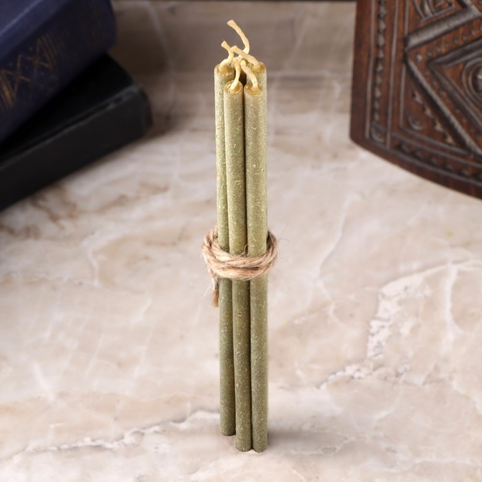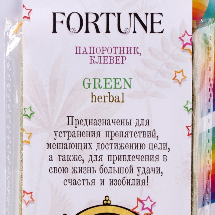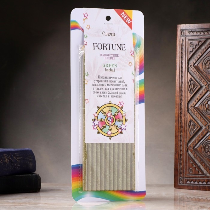 Свеча магическая медовая с папоротником и клевером для достижения целей «Fortune», 12 ш