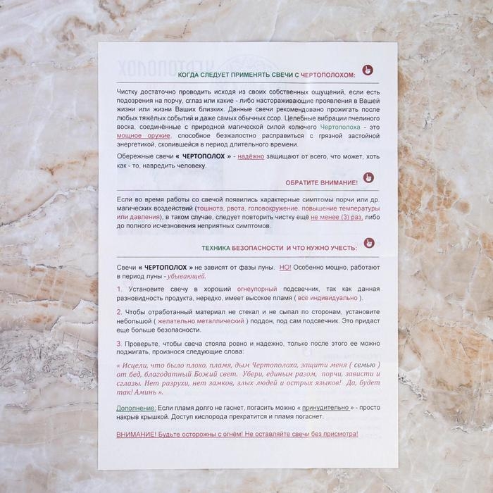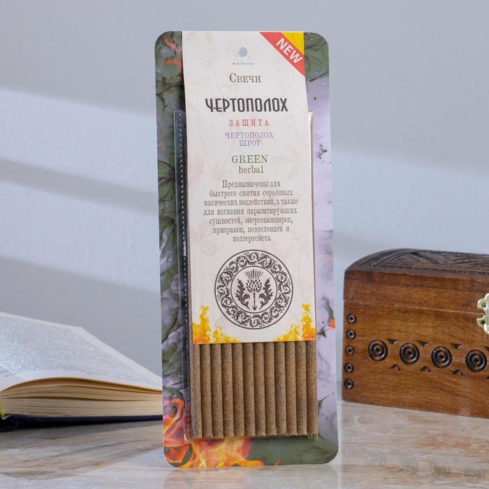 Свеча магическая медовая с травами для очищения пространства "Чертополох", 12 штук