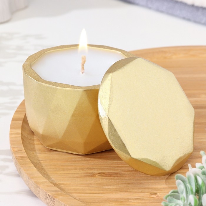 Свеча "Мрамор" в подсвечнике из гипса с крышкой, 8,5х6см, золото