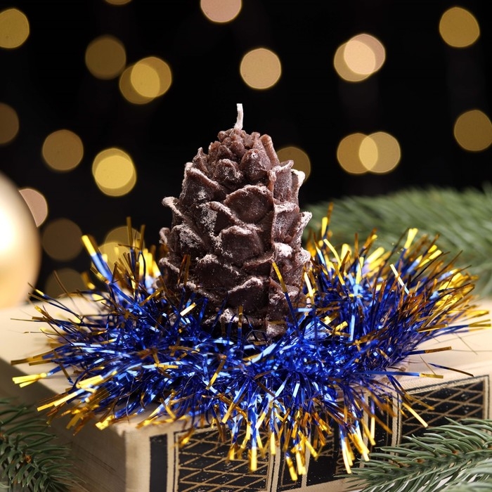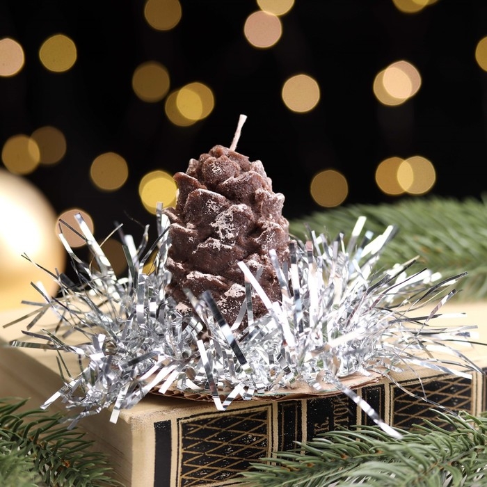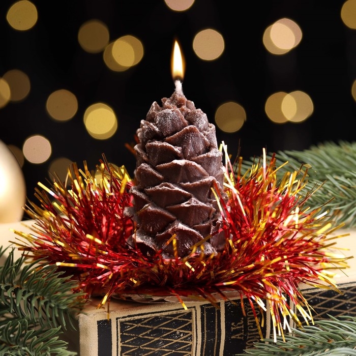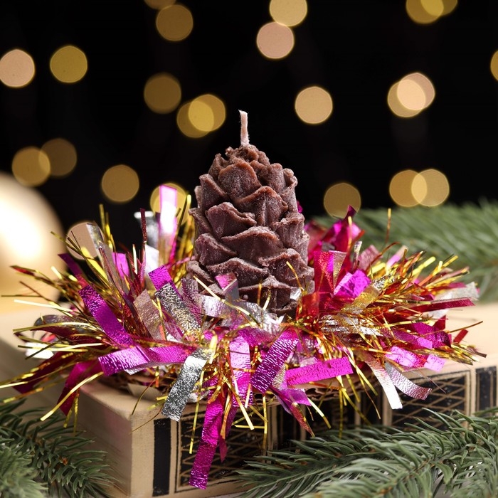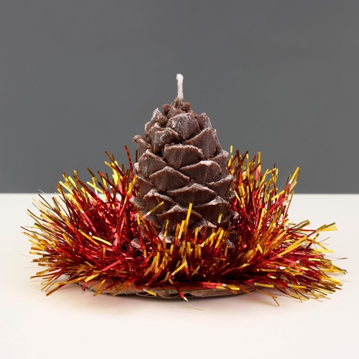 Свеча новогодняя "Шишка с еловым декором", 7 см, коричневая МИКС