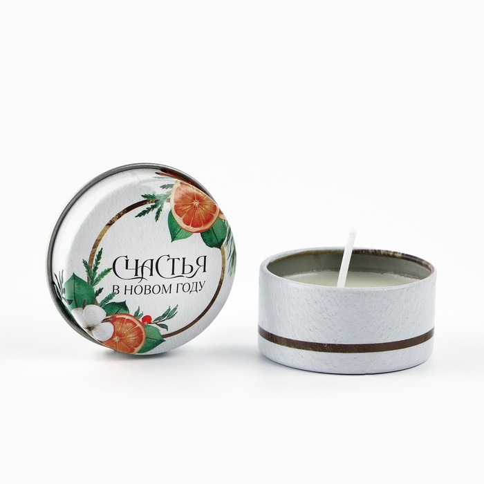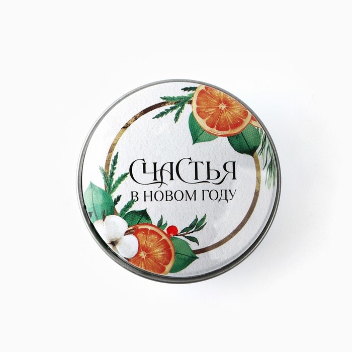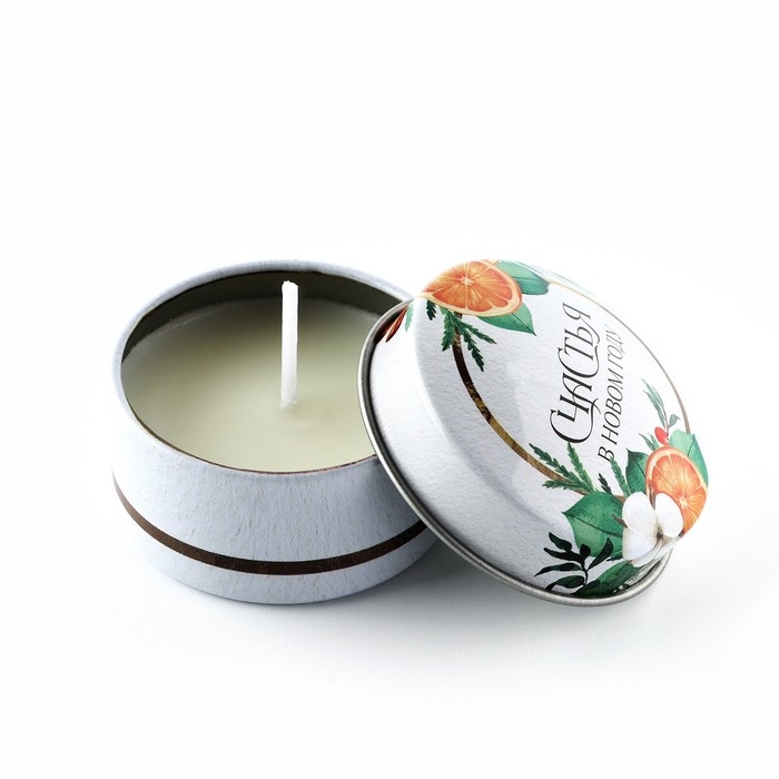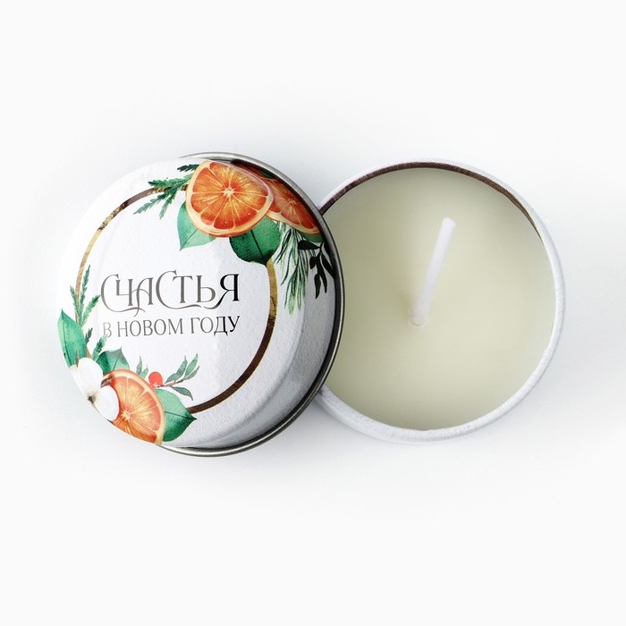 Свеча новогодняя в железной банке «Новый год: Счастья«Новый год: аромат апельсин, 4.8 см