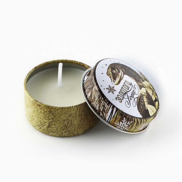 Свеча новогодняя в железной банке «Новый год: Золотая«Новый год: аромат ваниль, 4.8 см