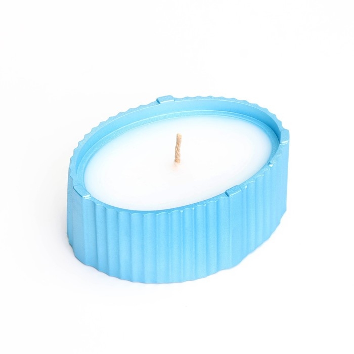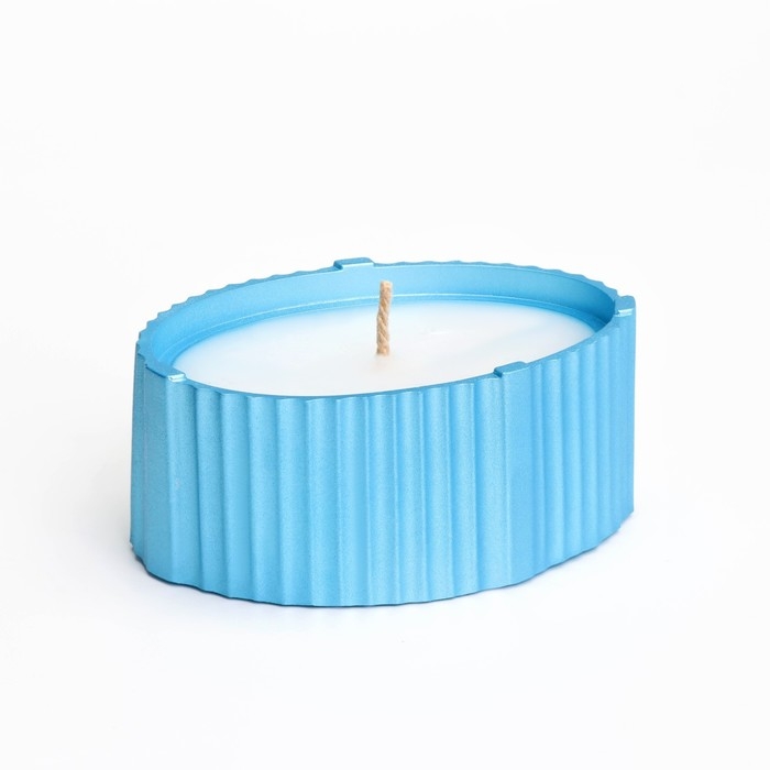 Свеча "Овал" в подсвечнике с узкими гранями, 9х6,5х4см,голубой