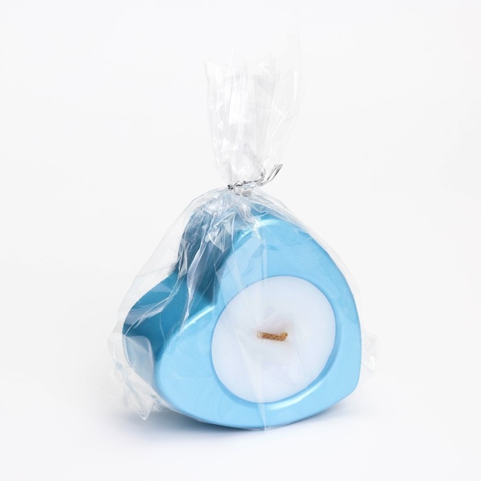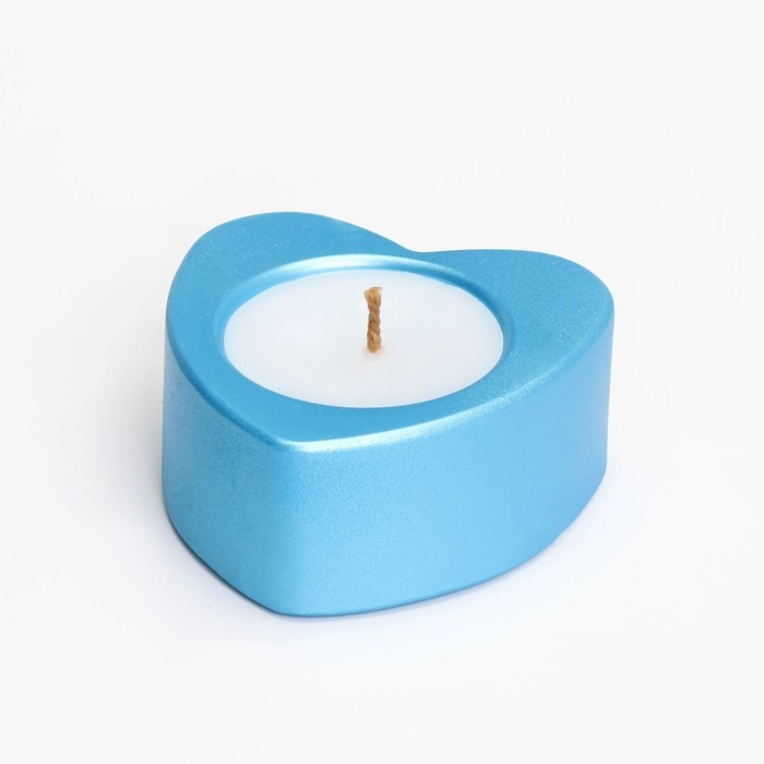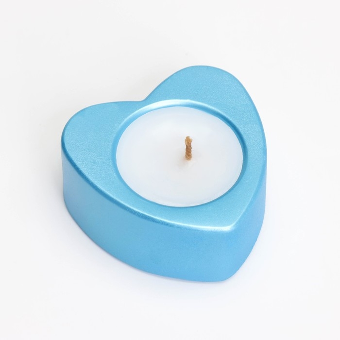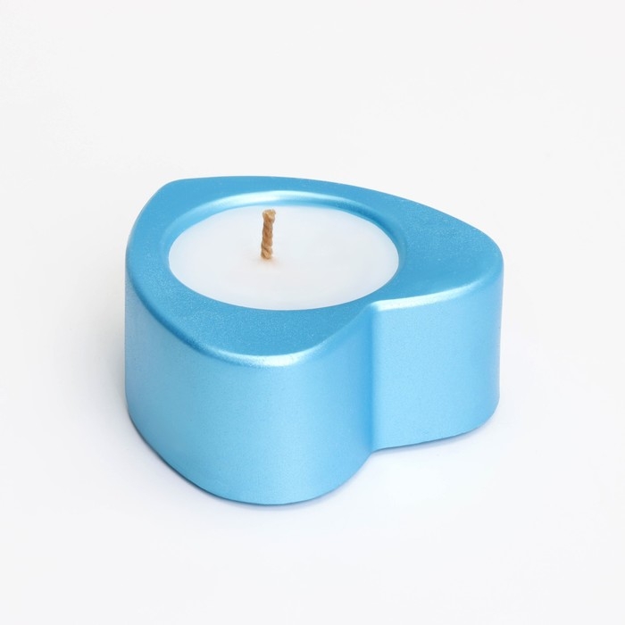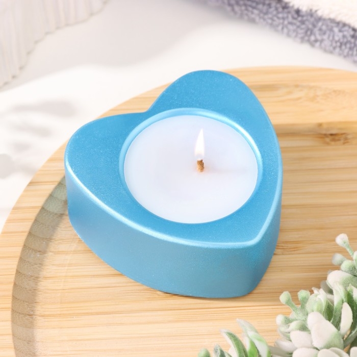 Свеча "Сердце малое. Мрамор" в подсвечнике из гипса, 7х3см,голубой