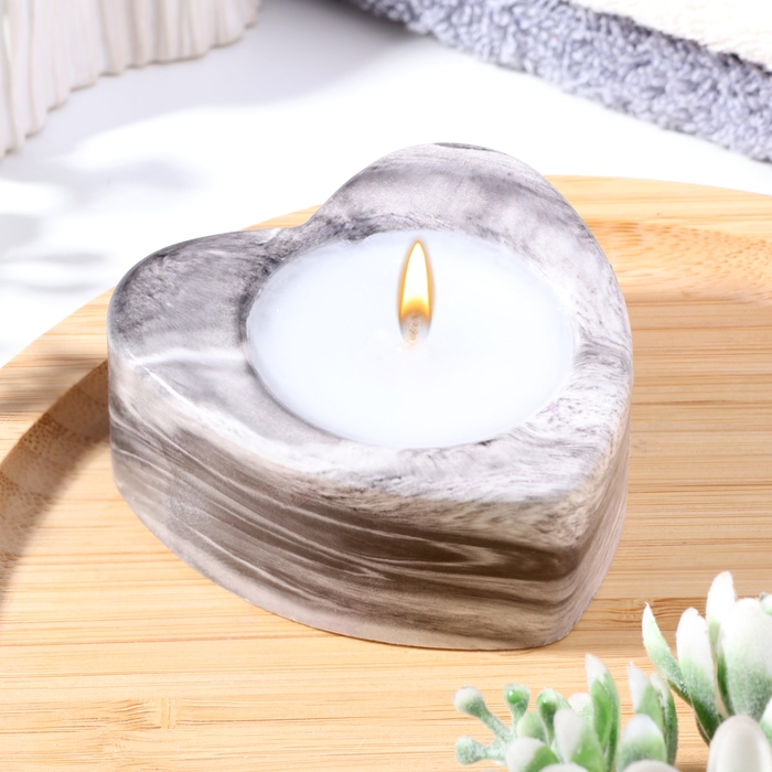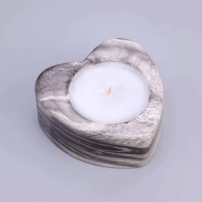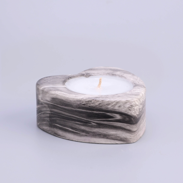 Свеча "Сердце малое. Мрамор" в подсвечнике из гипса, 7х3см,мрамор с чёрными полосками