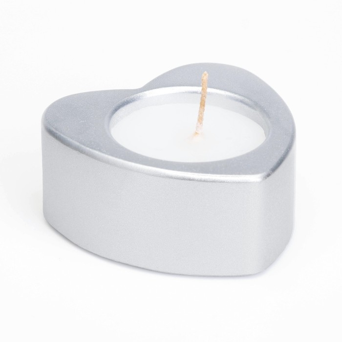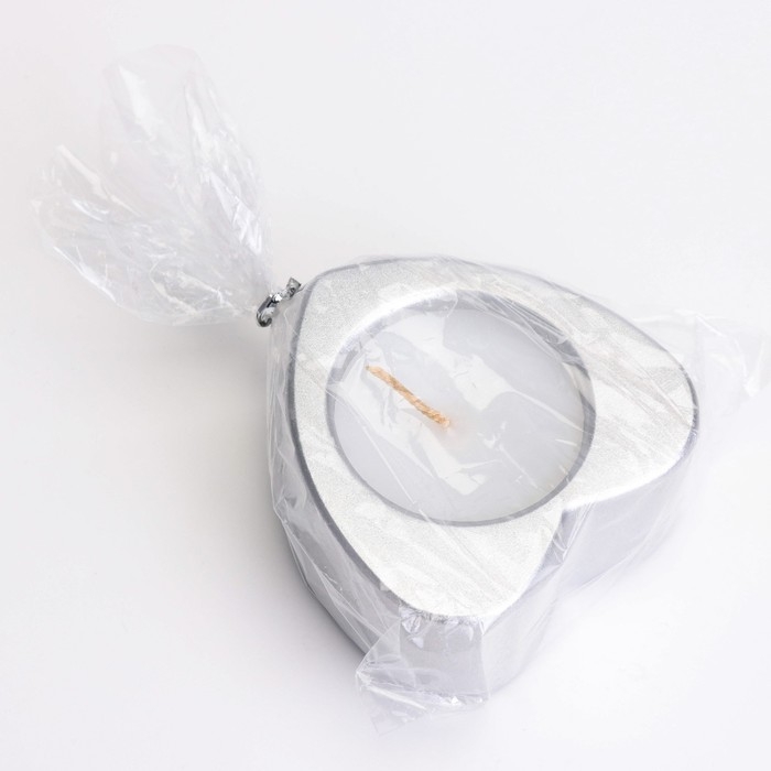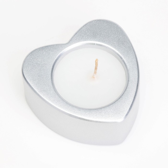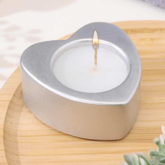 Свеча "Сердце малое. Мрамор" в подсвечнике из гипса, 7х3см,серебро