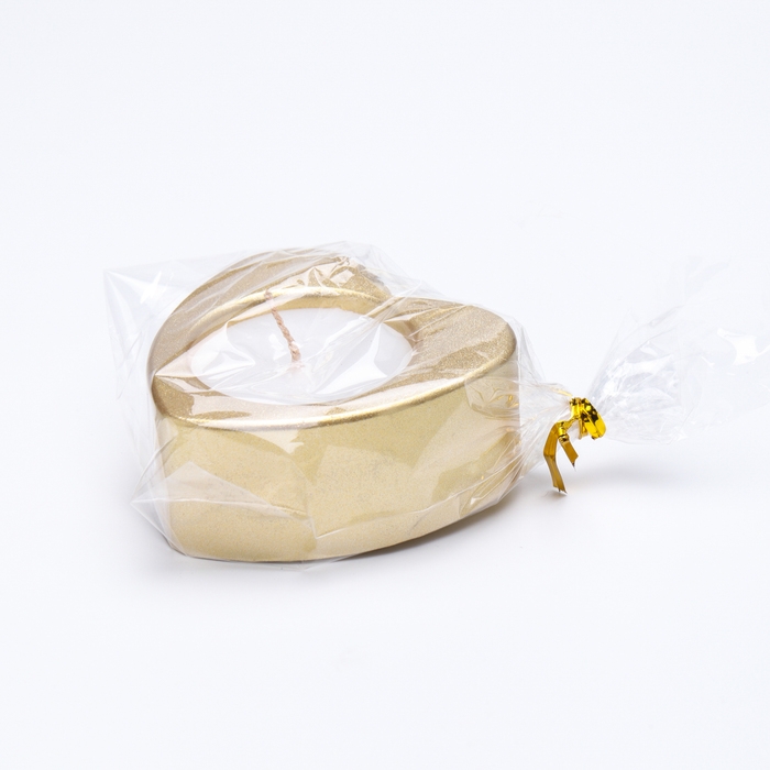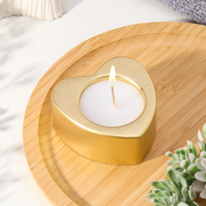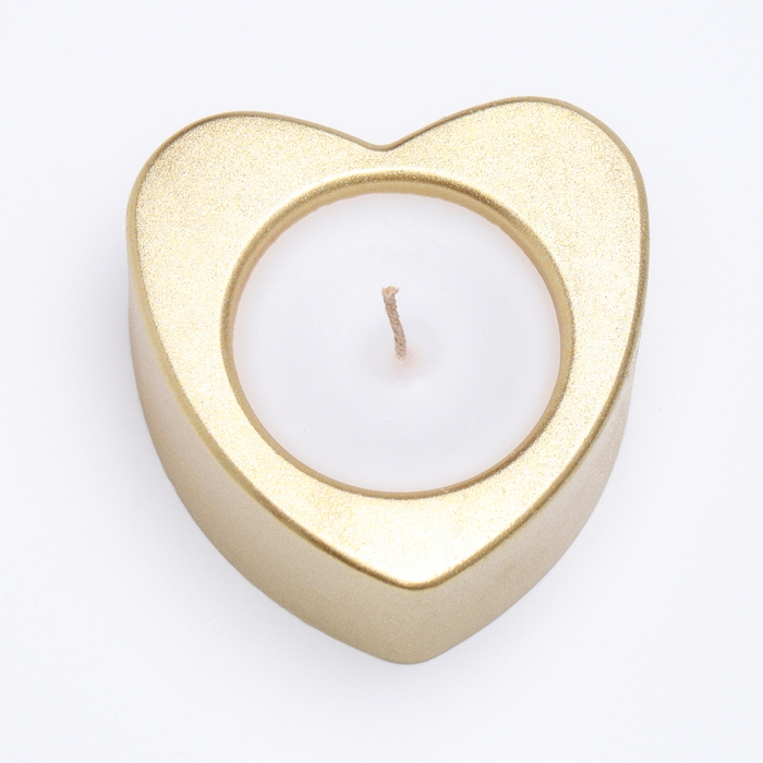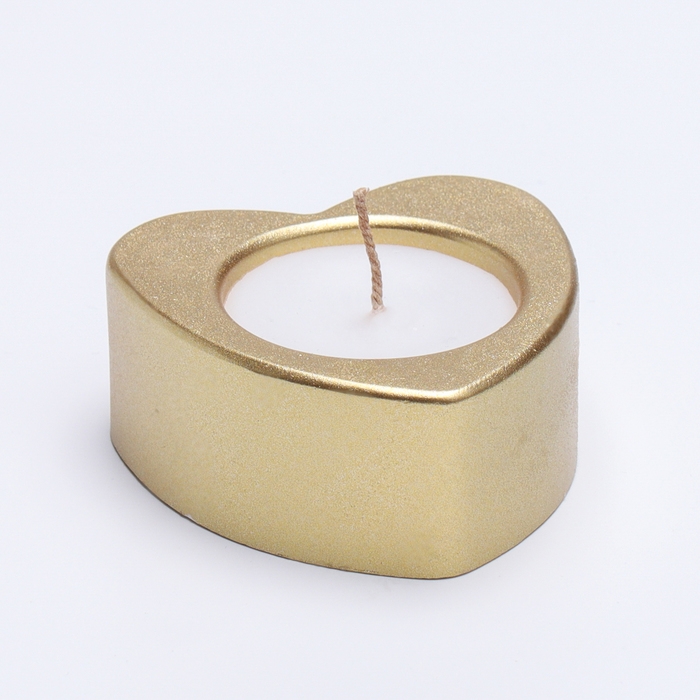 Свеча "Сердце малое. Мрамор" в подсвечнике из гипса, 7х3см,золото