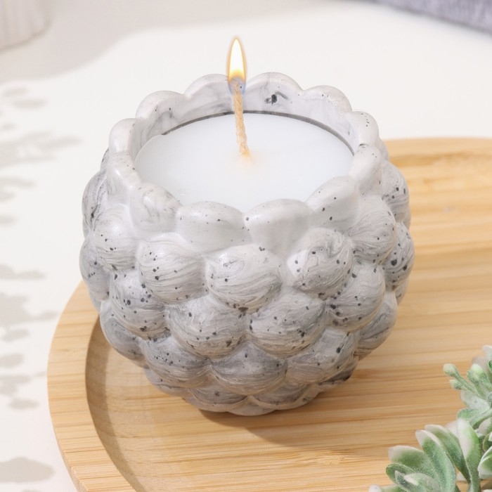 Свеча "Шар" в подсвечнике с шарообразными гранями из гипса,8х7см,мрамор с чёрными полосками