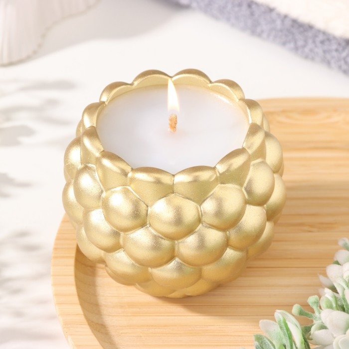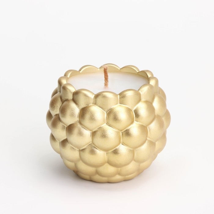 Свеча "Шар" в подсвечнике с выпуклыми шарообразными гранями из гипса, 8х7 см, золото