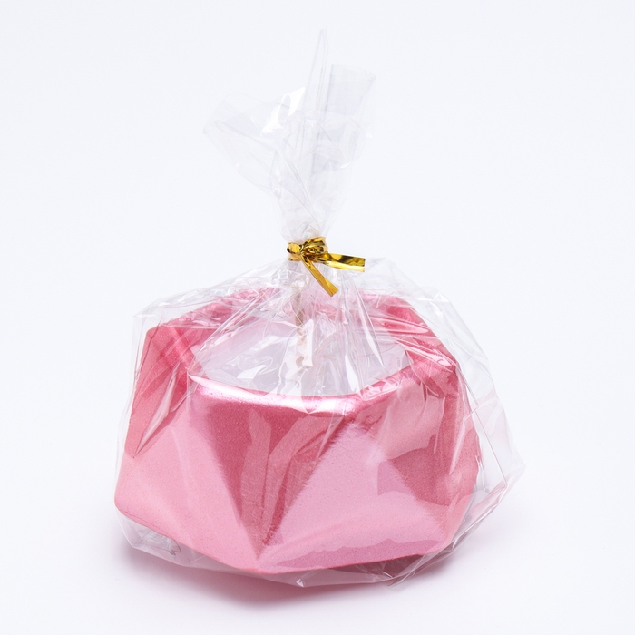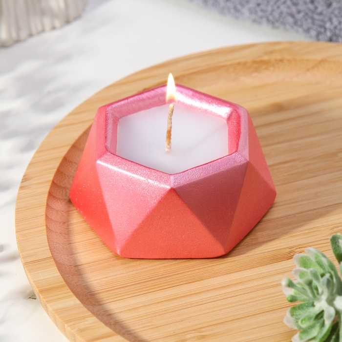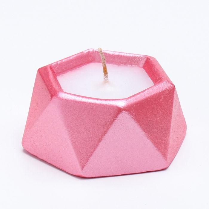 Свеча "Шестиугольник. Мрамор" в подсвечнике из гипса малый,7х3,5см,розовый