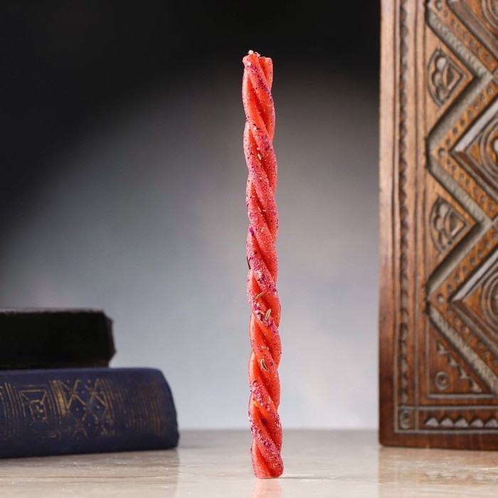 Свеча-скрутка "Влечение партнера" с розой, семенами укропа и пачули, 16х1,2 см, красный