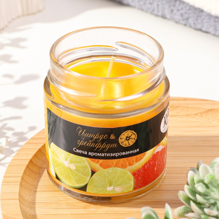 Свеча в банке ароматическая "Цитрус и грейпфрут", 25 ч
