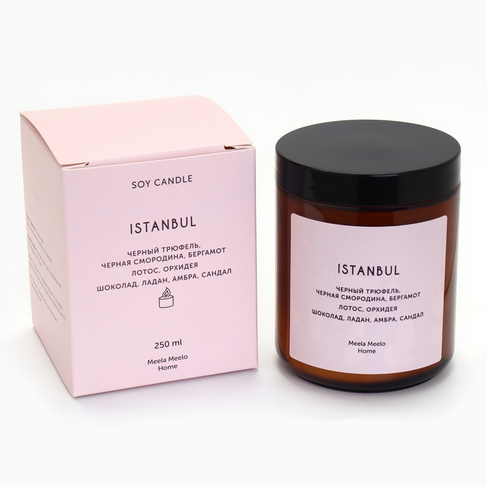 Ароматическая свеча ISTANBUL обладает пряным ароматом с мягким шлейфом, который создаёт атмосферу комфорта и уюта в спальне, гостиной, на кухне и в других комнатах. Представляет собой стеклянную баночку, заполненную соевым воском с ароматическими маслами и парфюмерной композицией, распространяющей аромат по всему пространству помещения.
