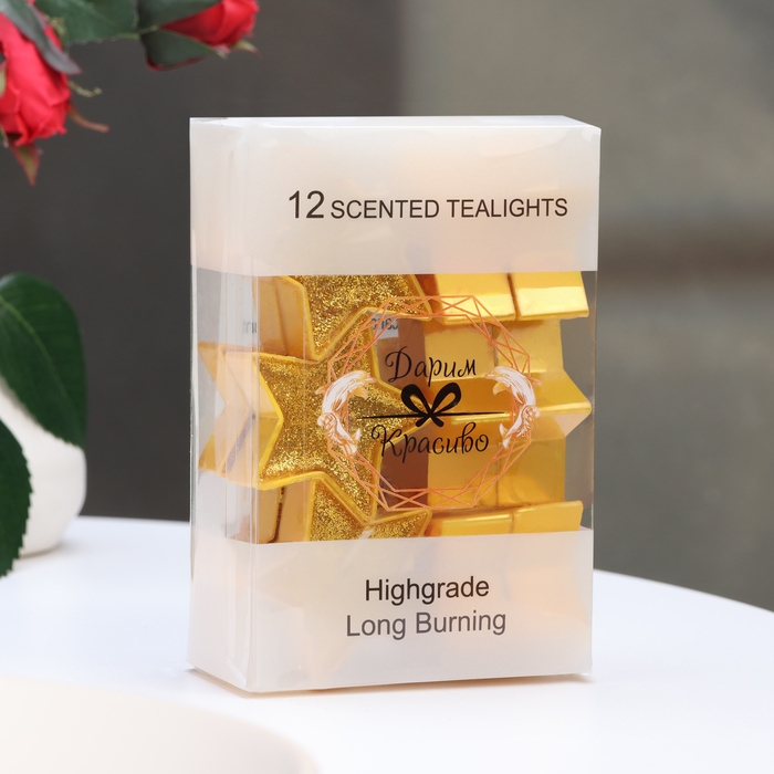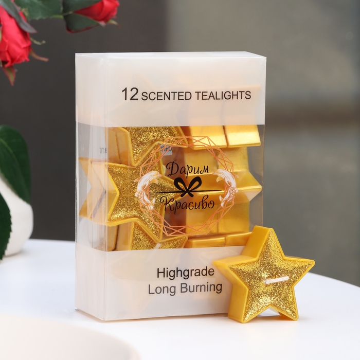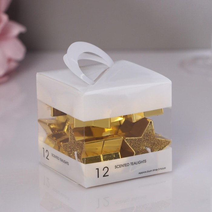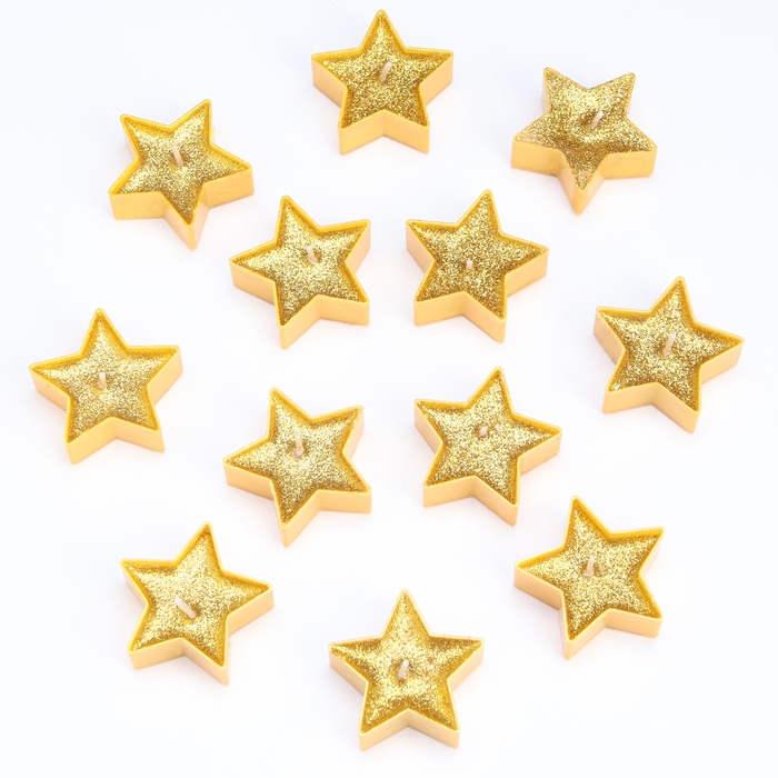 Свеча в гильзе "Звёздочка", набор 12 шт, золотая блёстка
