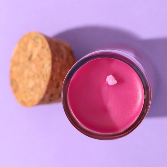 Свеча упакована в картонную коробку с розовым градиентом.