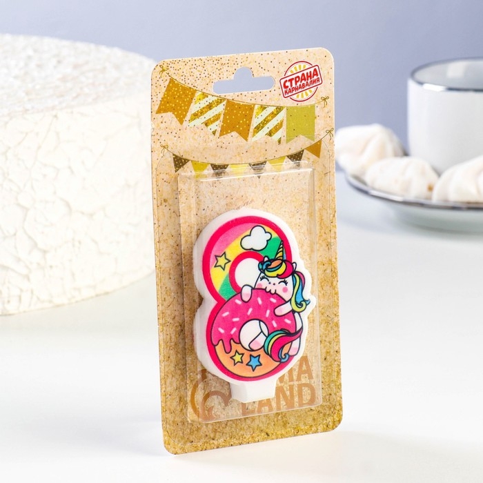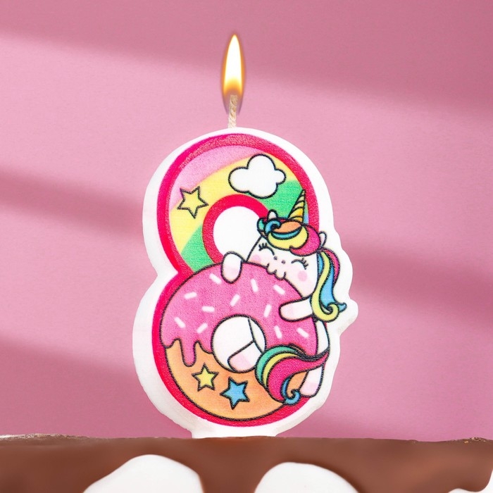 Свеча в торт "Единорог с шариком", цифра 8, розовый, 6,5 см — Reseiiup