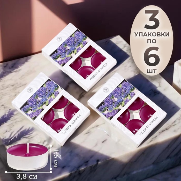 Свечи чайные ароматизированные "Горная лаванда" в подарочных коробках, 18 шт
