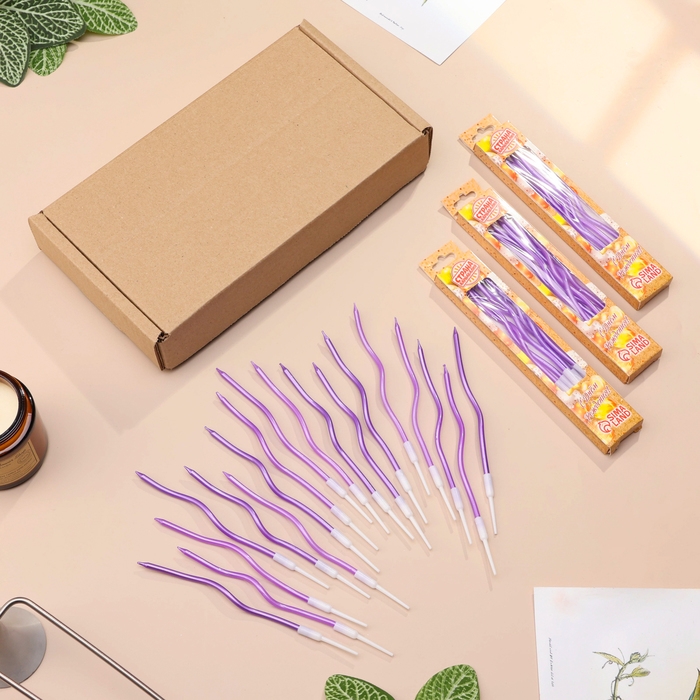Свечи для торта витые "Серпантин",12 см, 18 шт, коктейльные, фиолетовые