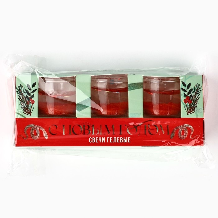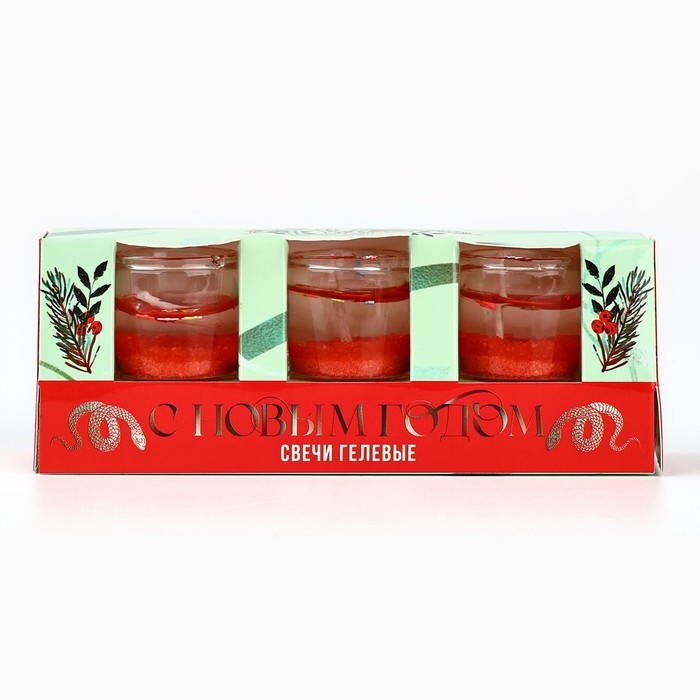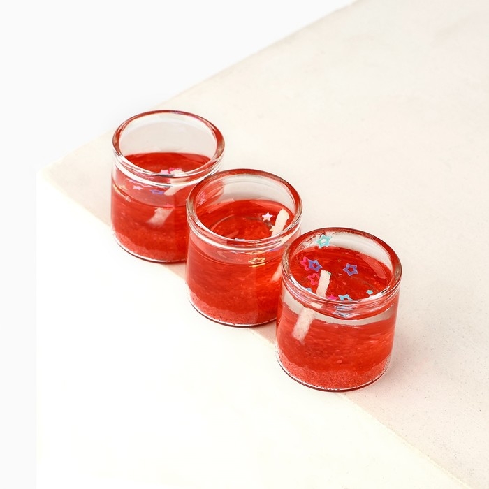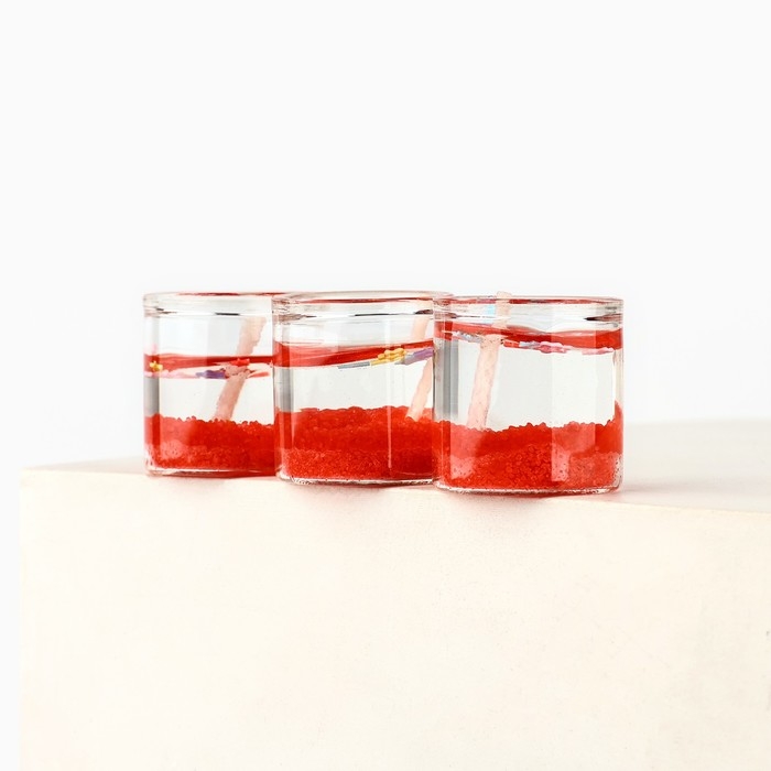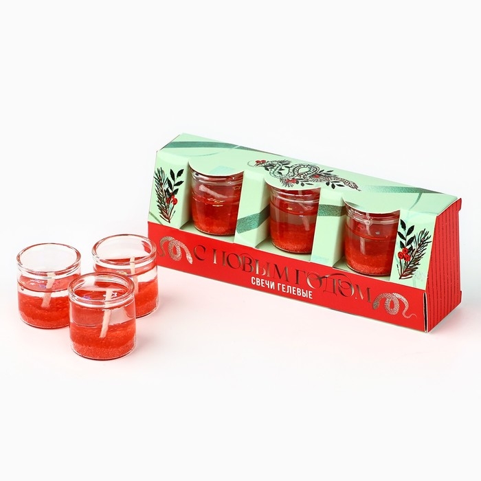 Свечи гелевые новогодние «С Новым годом!» на Новый год на Новый год, 3 шт, красные, 2,5 х2,5 х 2,5 см