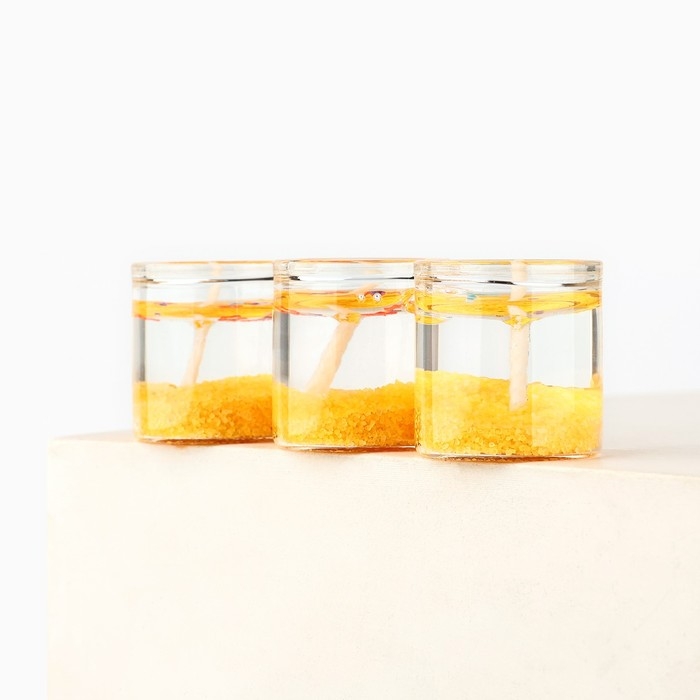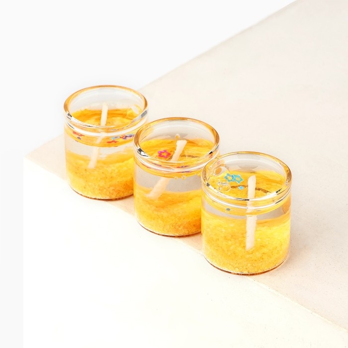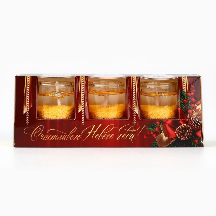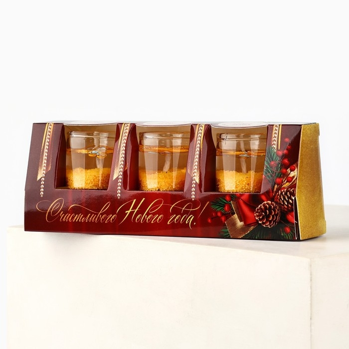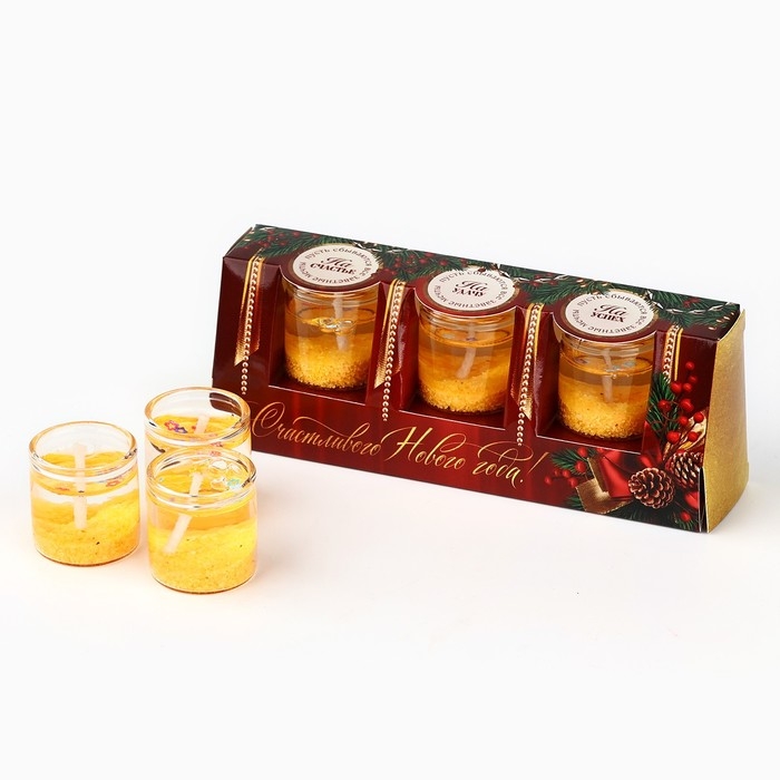 Свечи гелевые новогодние «Счастливого нового года» на Новый год на Новый год, 3 шт, золотые, 2,5 х2,5 х 2,5 см