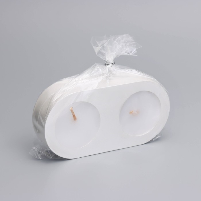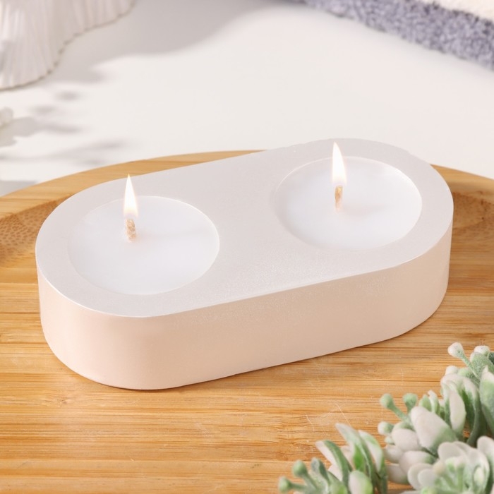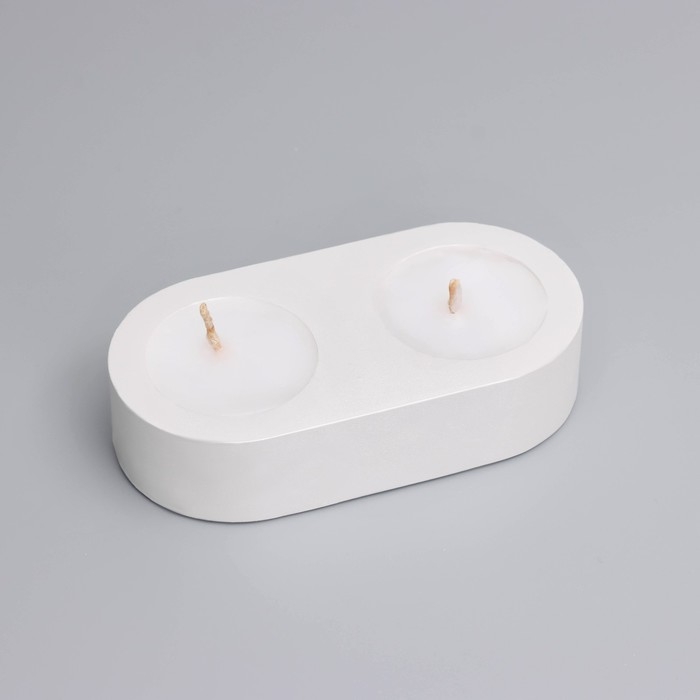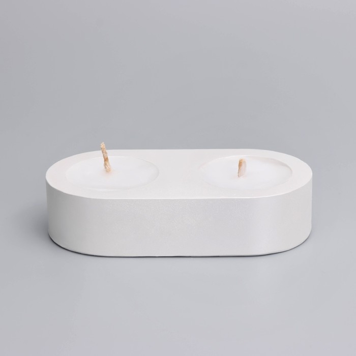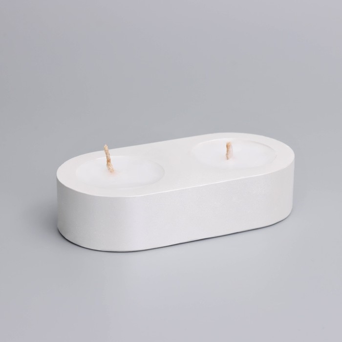 Свечи "Мрамор" в овальном подсвечнике из гипса,12х6х3см, белый перламутр