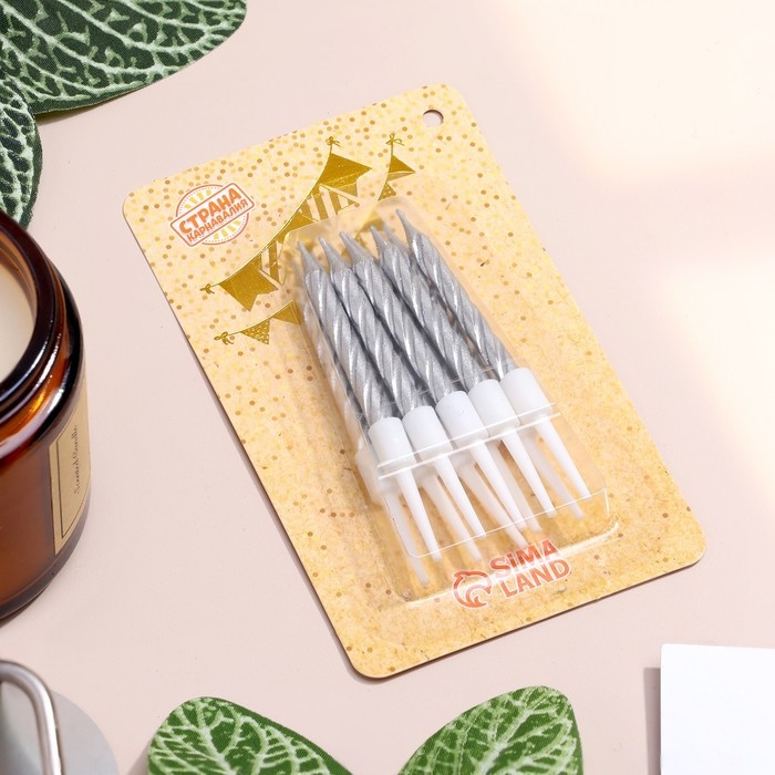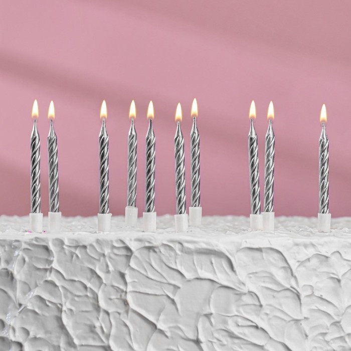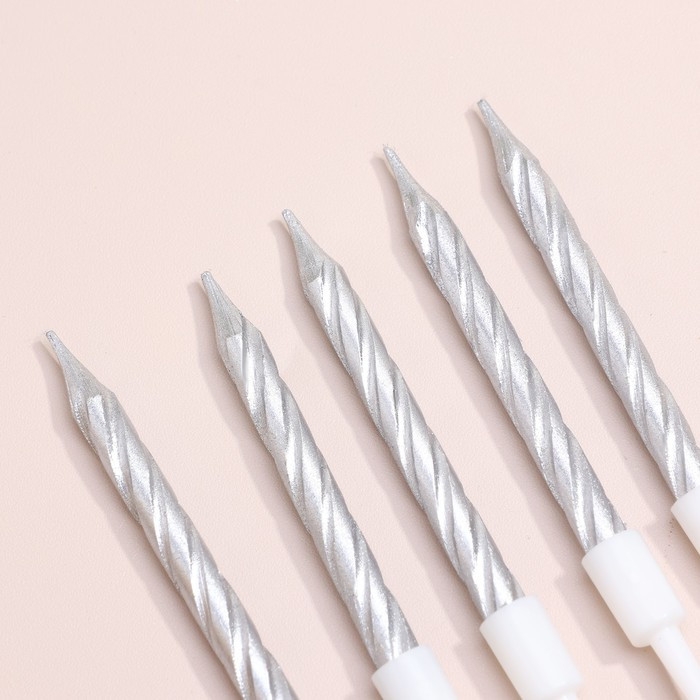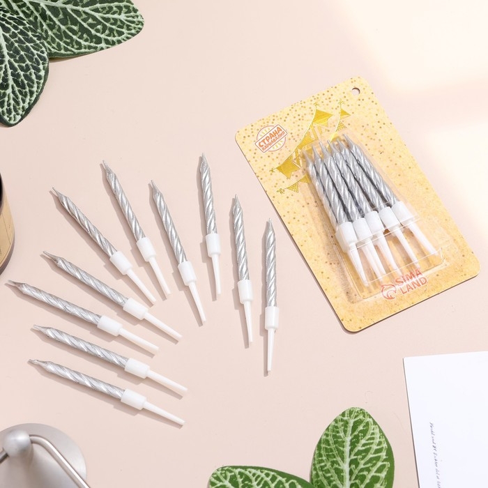 Свечи в торт "Спираль", 10 шт, средние, 5 см, металлик