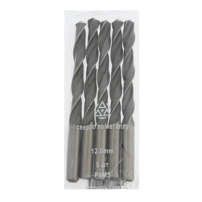 Сверло по металлу "Волжский инструмент", ц/х, d=12 мм, L=151 мм, Р6М5, 5 шт., ГОСТ 10902-77