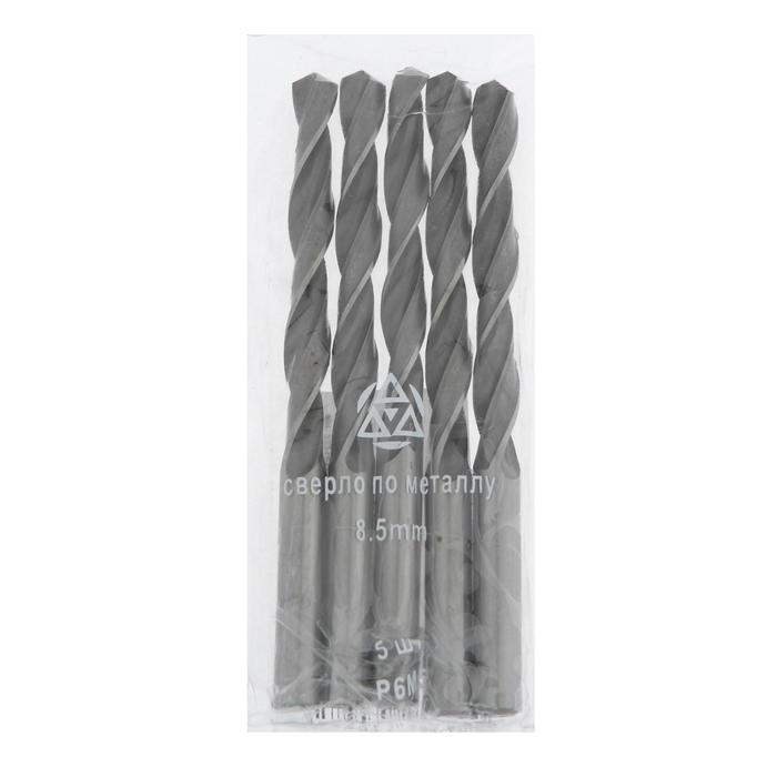 Сверло по металлу "Волжский инструмент", ц/х, в=8.5 мм, L=117 мм, Р6М5, 5 шт., ГОСТ 10902-77
