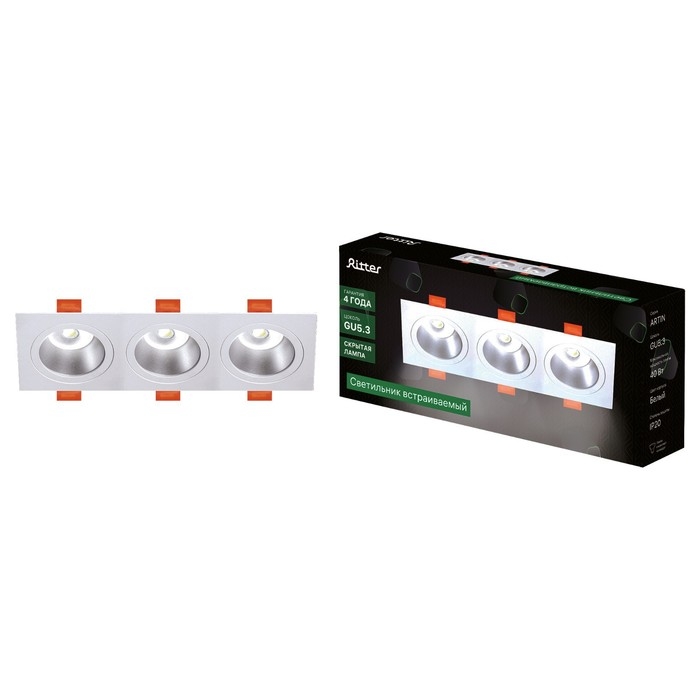Свет-к встр, ARTIN, скрыт ламп прямоуг 260х92х40мм монтаж отв 80х230мм 3хGU5.3 Al бел 51421
