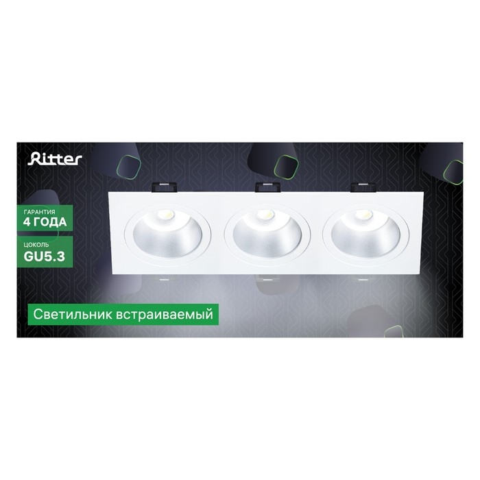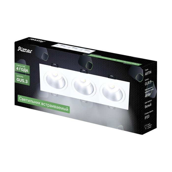 Свет-к встр-й, ARTIN, прямоуг 260х94х25мм монтаж отверст 75х230мм 3х GU5.3 Al черный 51427 5