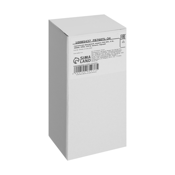 Светильник фасадный «Элегант», FSD-091, 6 Вт, 3000К, IP65, 220 В, металл, черный