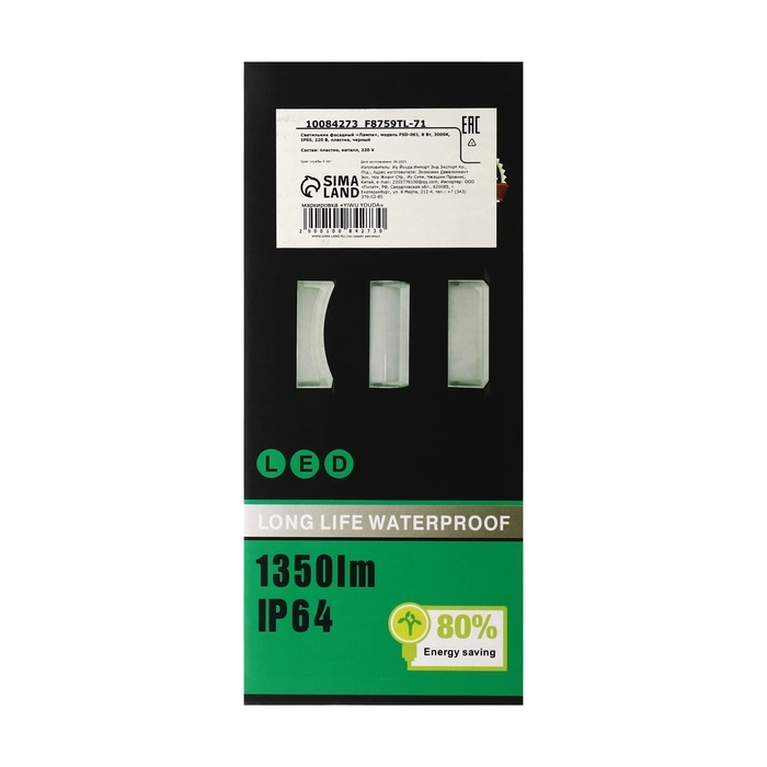 Светильник фасадный «Лампа», FSD-061, 8 Вт, 3000К, IP65, 220 В, пластик, черный
