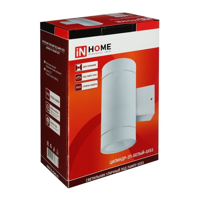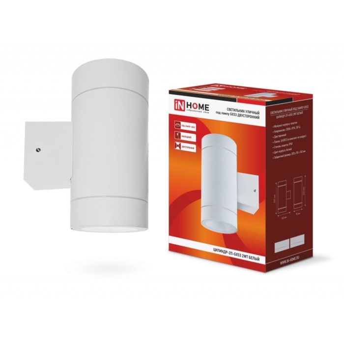 Светильник IN HOME ЦИЛИНДР-2П, 15 Вт, GX53, IP65, архитектурный, двухсторонний, белый