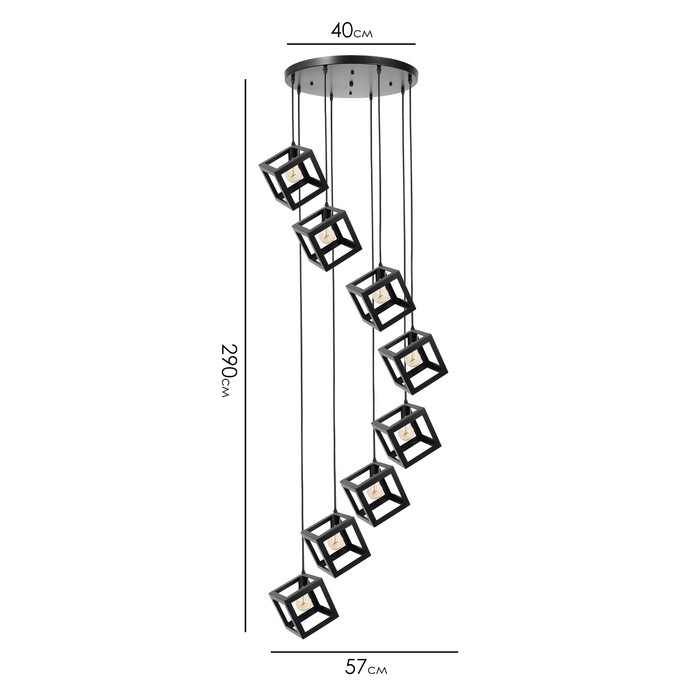 Светильник-каскад "Квадрат" 8хЕ27 40Вт черный 57х57х290 см