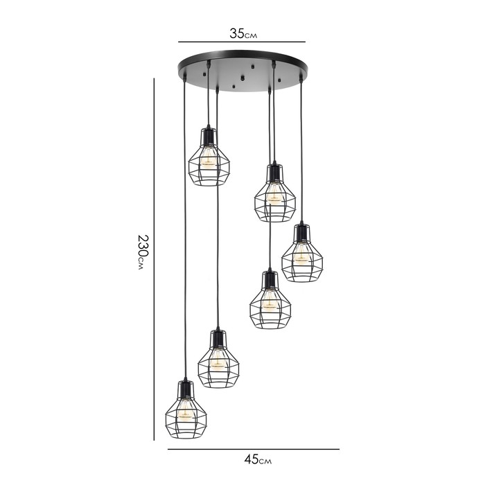 Светильник-каскад "Ортико" 6хЕ27 40Вт черный 45х45х230 см