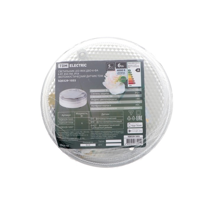 Светильник LED ЖКХ ДБО-6-ФА TDM, 6 Вт, 850 лм, IP54, фотоакустический датчик