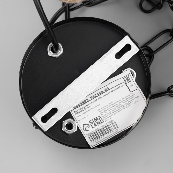 Светильник "Мотоцикл" 5хЕ27 40Вт черный 52х34х33 см