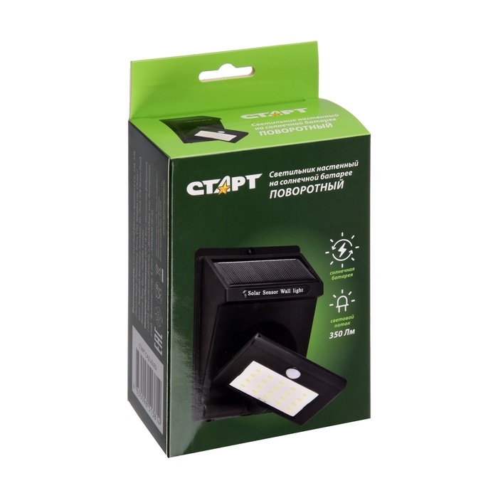 Светильник на солнечной батарее "СТАРТ", 10x5x13 см, 20LED, IP65, поворотный, БЕЛЫЙ