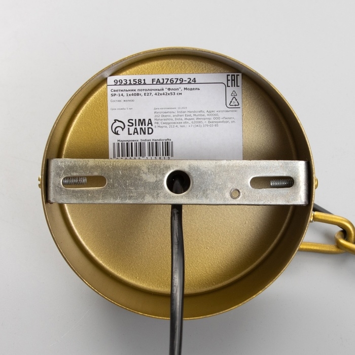 Светильник потолочный "Флоп" золотистый 1х40Вт, Е27, 50х50х62 см