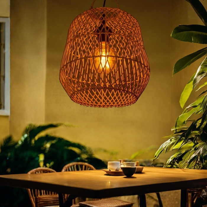 Этнический светильник ручной работы сделан из экоматериала — ротанга (очищенных и высушенных стеблей лиан).