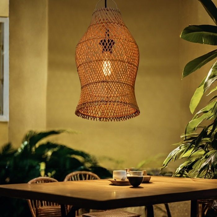 Этнический светильник ручной работы сделан из экоматериала — ротанга (очищенных и высушенных стеблей лиан).