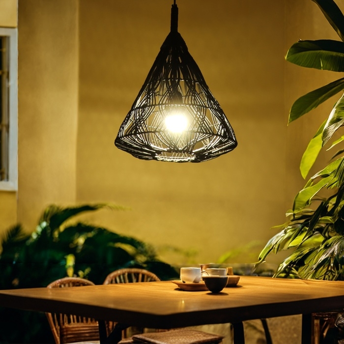 Этнический светильник ручной работы сделан из экоматериала — ротанга (очищенных и высушенных стеблей лиан).